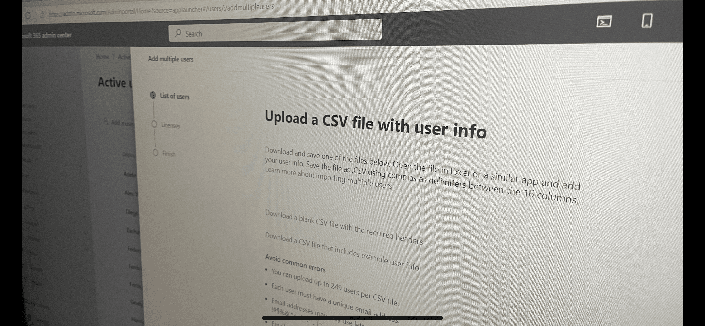 Adding Multiple Cloud Users to Microsoft 365 tenant.