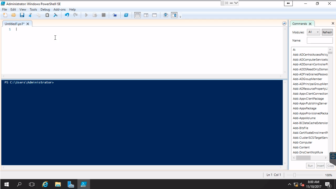 Open Windows PowerShell ISE from the start menu.
