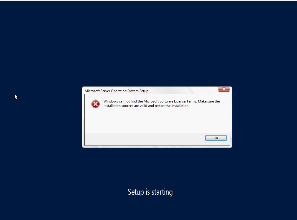 I am trying to install windows server on my virtual machine and keep getting an error message can someone please have look at the attached image an advise on the solution for the error message