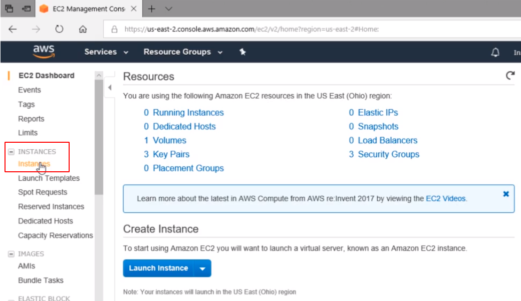 And we are going to terminate our EC2 instance. Click on Instanced on the left menu.