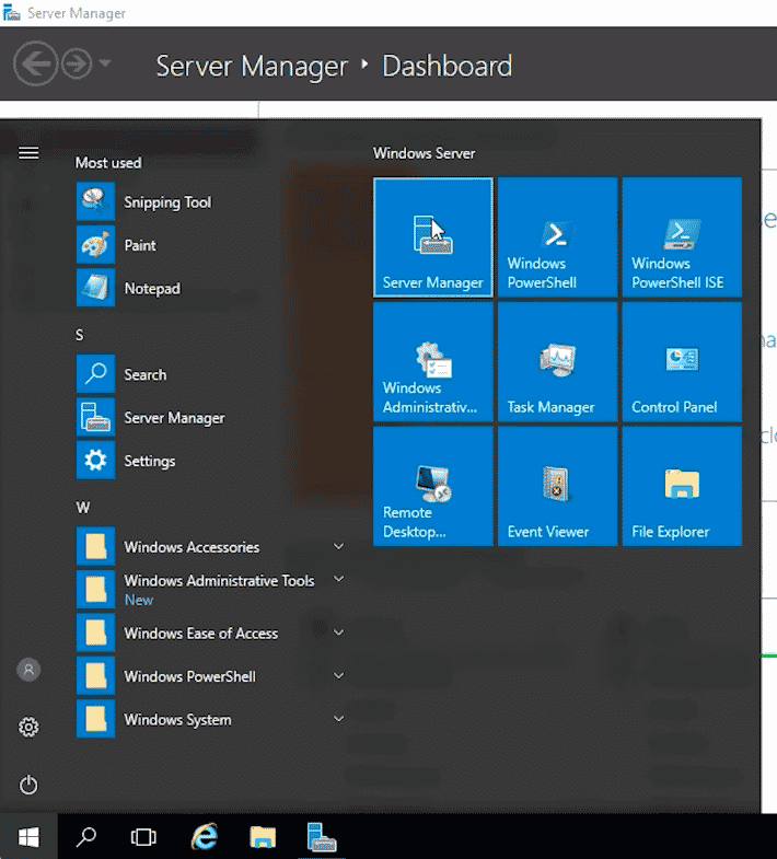 Again, if you don't have Server Manager up you can click the Start button here, and just select Server Manager.