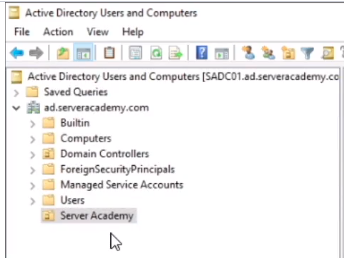 Open Active Directory Users and Computers by selecting from Server Manager > Tools Active Directory Users and Computers.