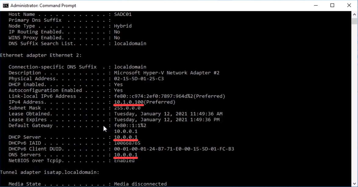 Once you run the command look for the: IPv4 Address, DNS Server and Default Gateway.