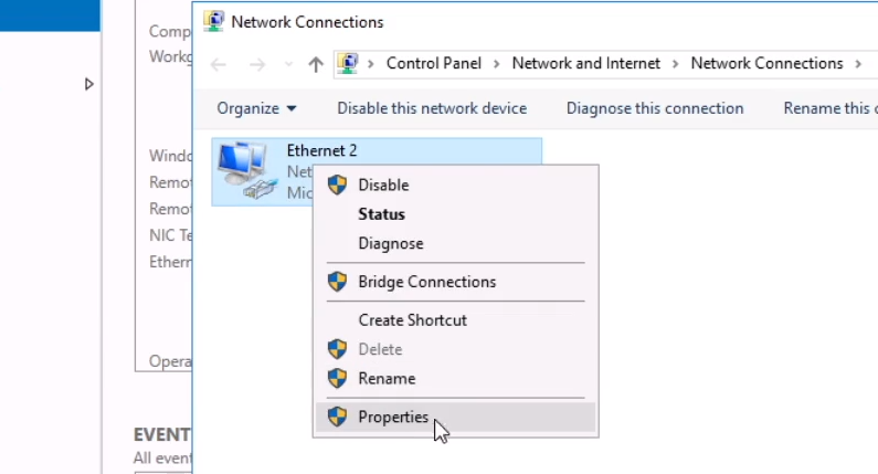 Now you right-click your ethernet adapter and select Properties: