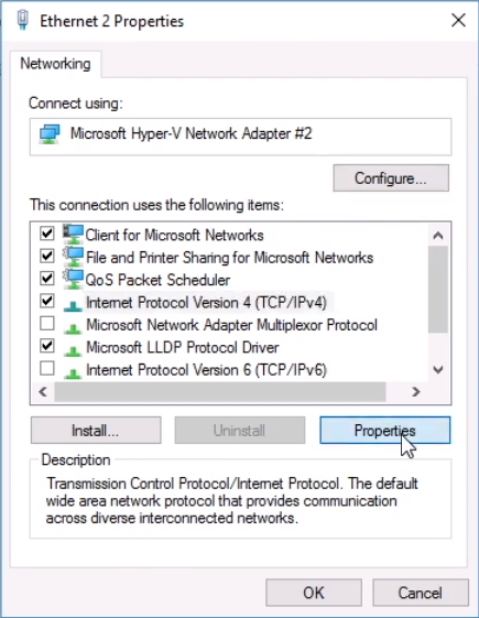 Turn off IPv6, select IPv4 and click Properties: