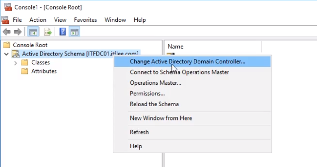 Right-click Active Directory Schema and select Change Active Directory Domain Controller: