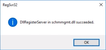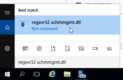 Let’s start by transferring the Schema Master FSMO role to SADC02. To get started, log in to DC02, click the start button and search for and launch “regsvr32 schmmgmt.dll”