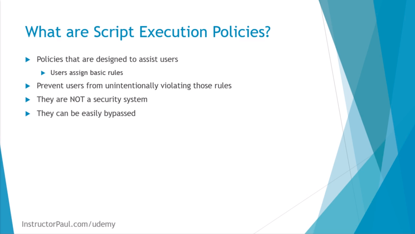 Now, first I want to talk about what are Script Execution Policies? Also known as Execution Policies.
