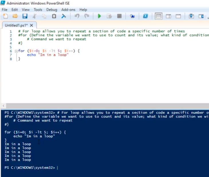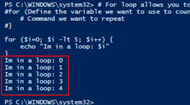 for ($i=0;$i -lt 5; $i++) {