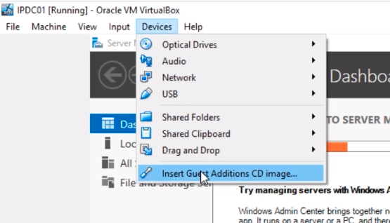 So, what I am going to do on VirtualBox is very simple. What I am going to do is choose Devices > Insert Guest Additions CD Image…