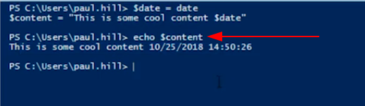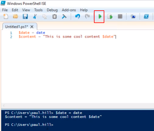 We are going to do a simple single-line command that is going to add some text followed by the date. Let’s start with the following and press Play.