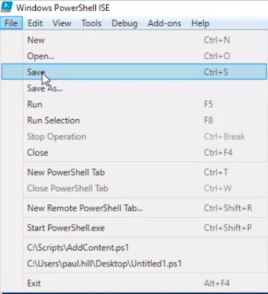 And, we are going to This PC > C:\ > and create a new folder called Scripts and name it AddContent.ps1. Click on Save.