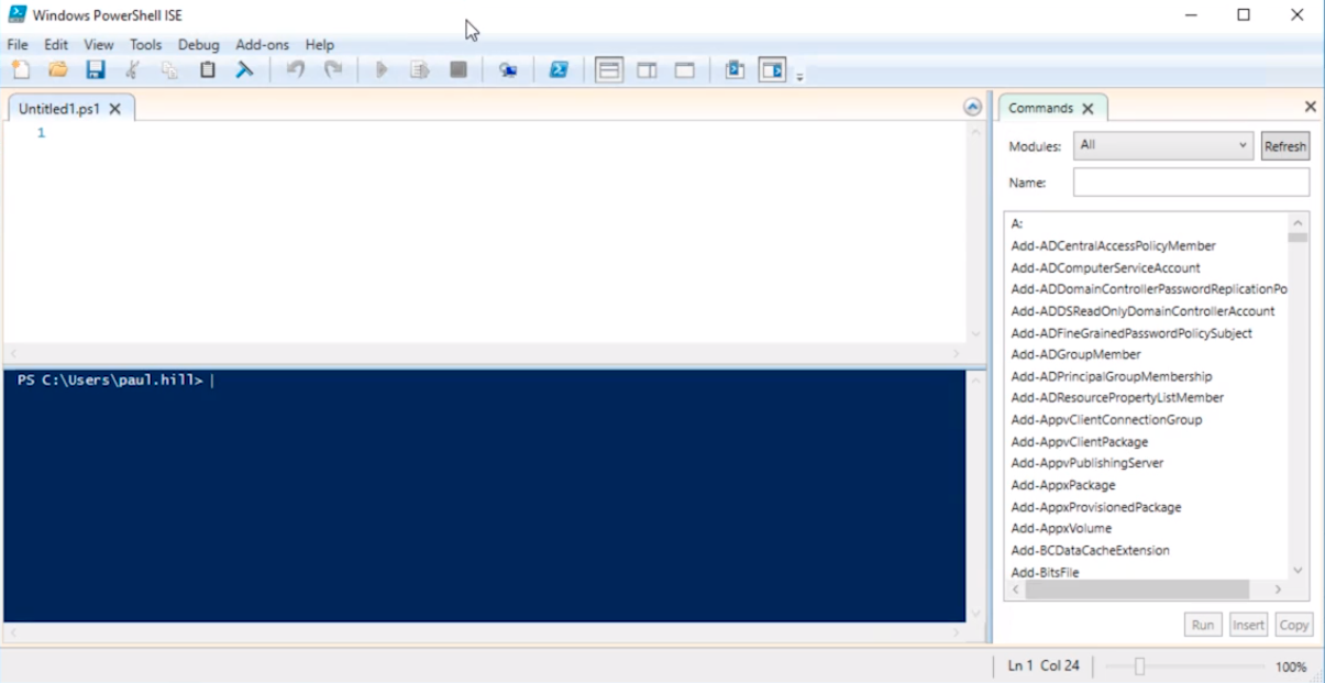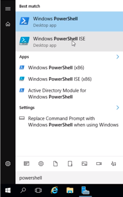 Now, I am going to type in powershell, and we are going to run the PowerShell Intelligent Scripting Environment or PowerShell ISE.