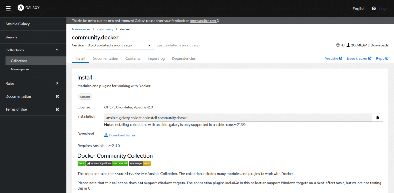 On this website, you can filter your search by categories, such as cloud, system, monitoring, and so on. Each role and collection comes with documentation, including how to install and use it, making your job much easier.