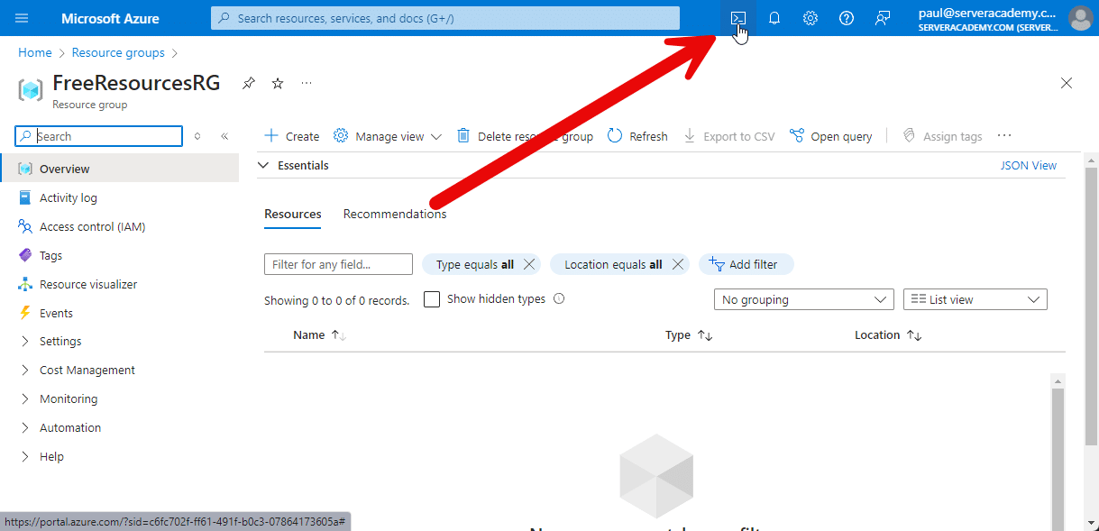 To get started, you need to log in to the Azure Portal and access the Cloud Shell.