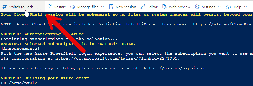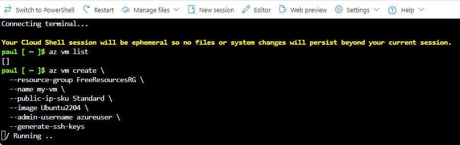 Now, you have access to the Azure CLI through the Cloud Shell.