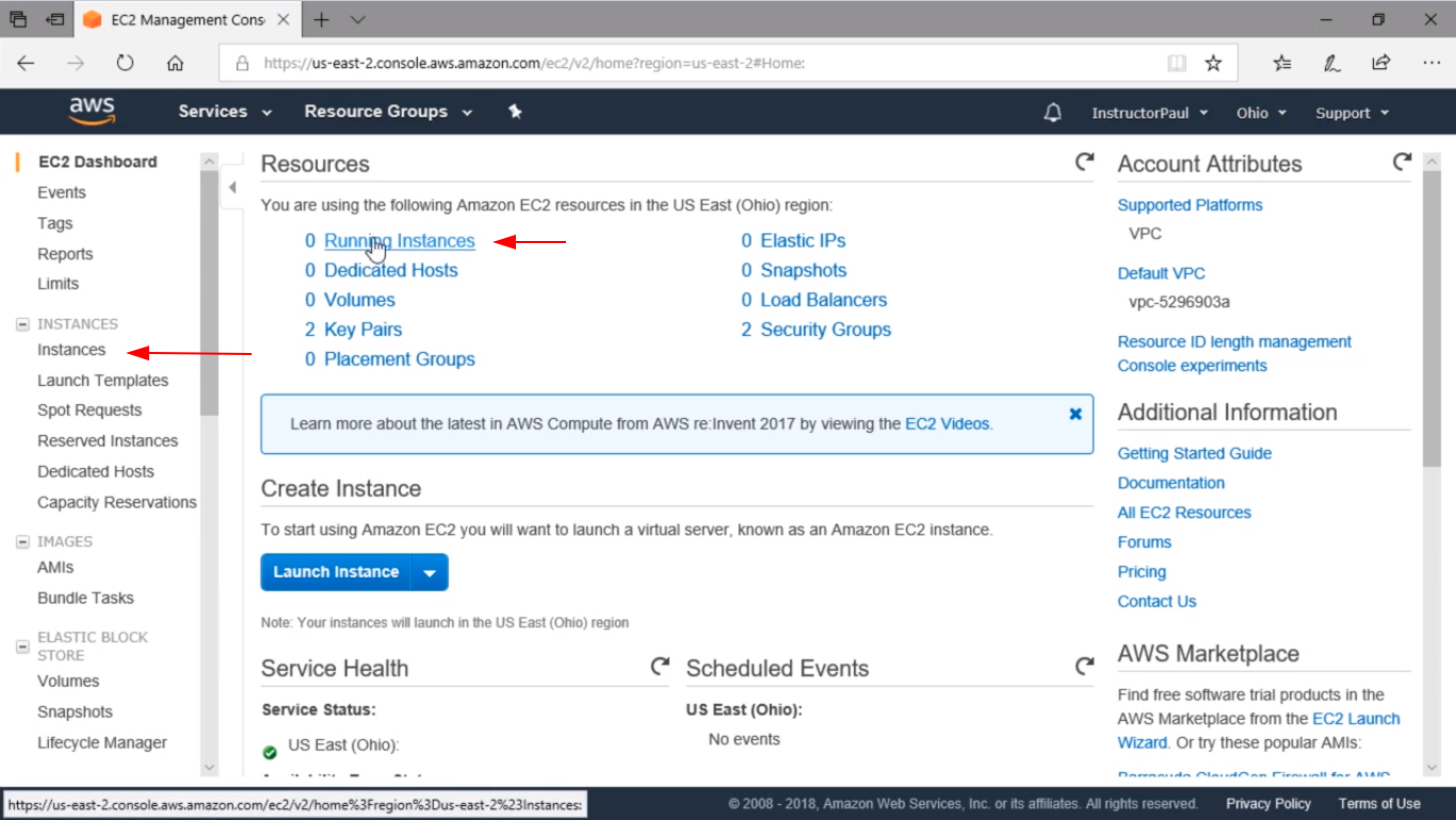 What you are going to do is click either Running Instances or we could choose Instances from the left menu pane.