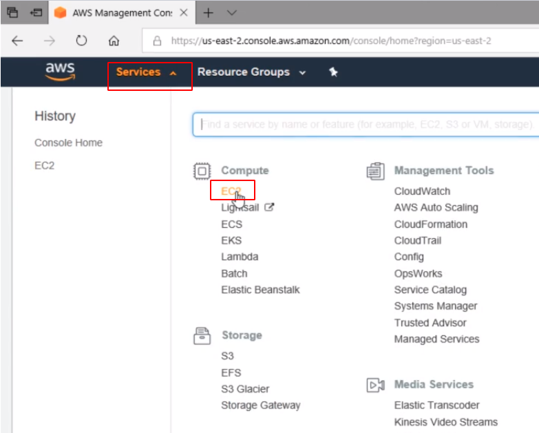So I have logged into the Dashboard and what I am going to do is click on Services and under Compute click on EC2.