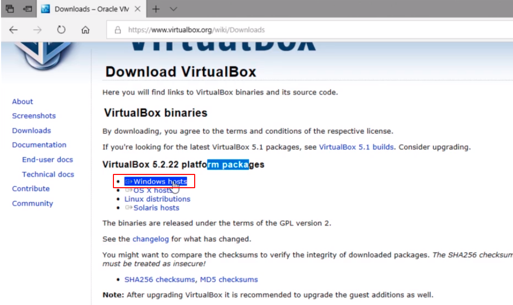 Choose from the download section VirtualBox for your OS platform. In my case, we are selecting Windows because that’s what I use for my Host Base OS.
