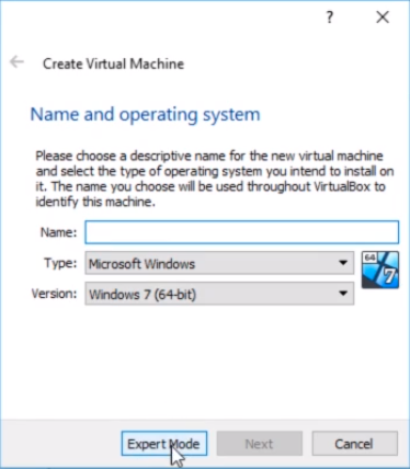 Once we click that we are going to get a new window named Create Virtual Machine. I like to use the Expert Mode so I am going to click that button.