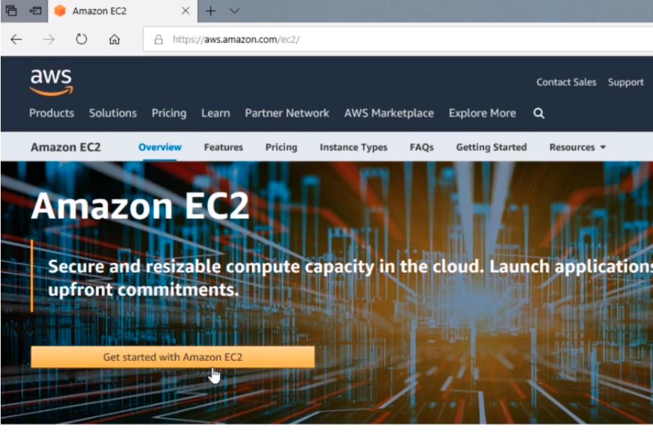 Now, keep in mind that this page may change from time to time but the process generally is going to be the same just google Amazon EC2 and it will take you to the page where you have to click the button to get started or register.