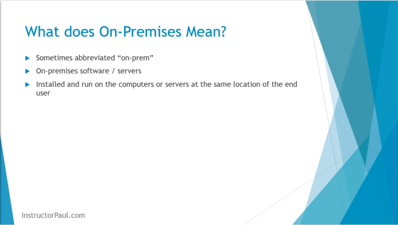 Basically, On-Premises means that whatever you are going to use whether it is Software, whether it is a Server, or whether it is a Lab it means that it is installed and run on the computers and servers that are at the same location of the End-User.