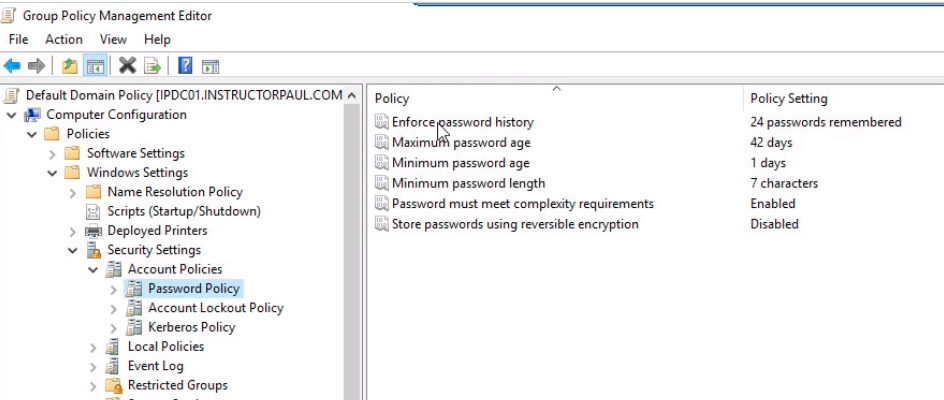 Configuring Domain Password and Account Lockout Policies with Group Policy