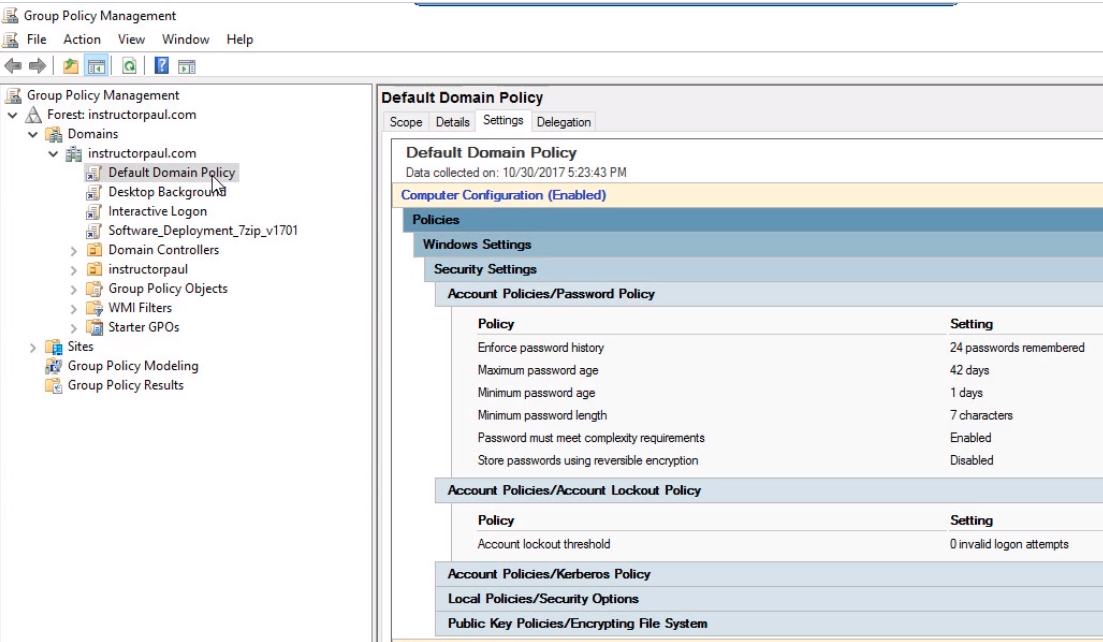So, if you create a new GPO it is important for you to know that there is the Default Domain Policy that is also configuring these settings.