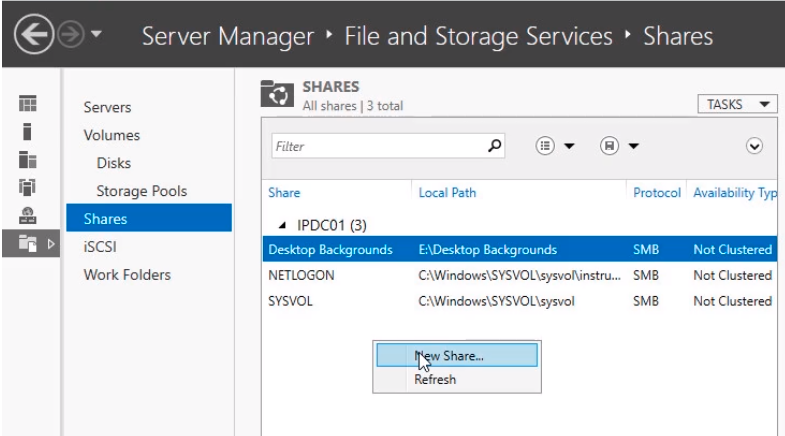 Now on the middle pane right-click and select New Share...