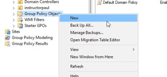 Creating a GPO is very similar to creating a user account within Active Directory. All you need to do is right-click on Group Policy Objects and choose New.