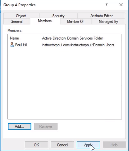 I am going to add paull.hill to Group A. Double click on Group A to open the properties.