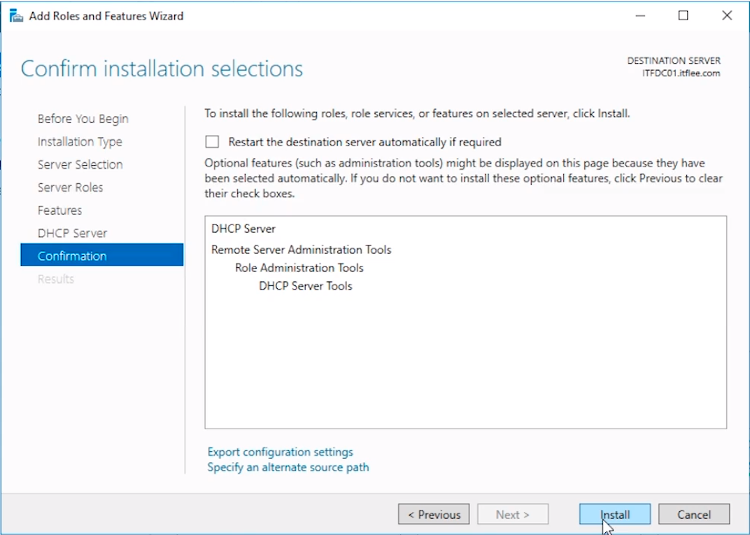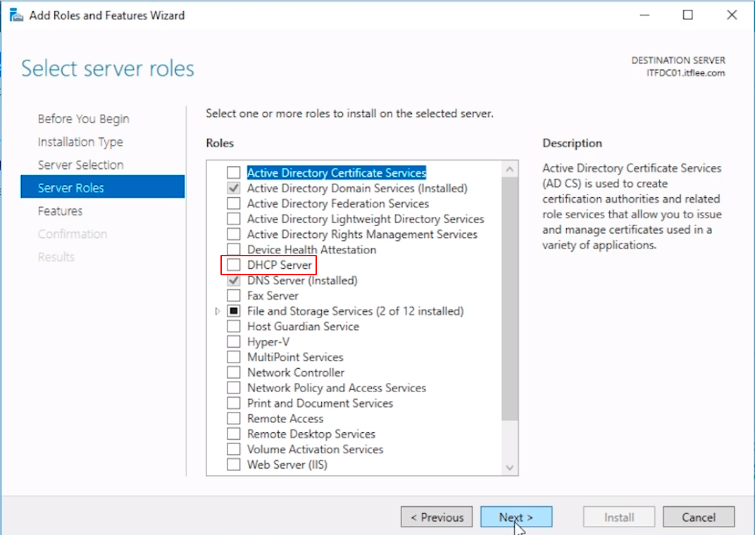 Install the DHCP Server Role