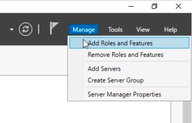 To install DHCP on a server, open Server Manager and select Manage > Add Roles and Features.