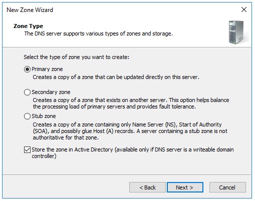 - **Primary **– A primary zone is a DNS zone that is the primary source of information.