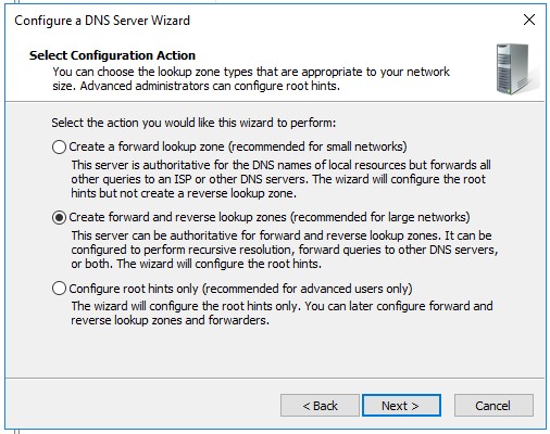 - We will Create a Forward and a Reverse Lookup Zone, using the DNS Server Wizard.