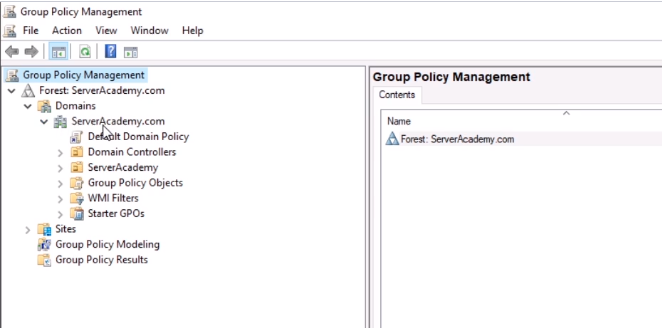 Expand Forest which is my ServerAcademy.com, expand Domains, and ServerAcademy.com.