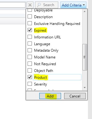- From the search bar, click the Add criteria button, Scroll down and click expired, scroll down then check product , click add.
