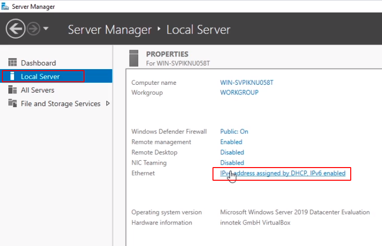 We are going to go to the Local Server tab on the left and then we are going to click over next to Ethernet. We are going to click on this blue text that says IPv4.
