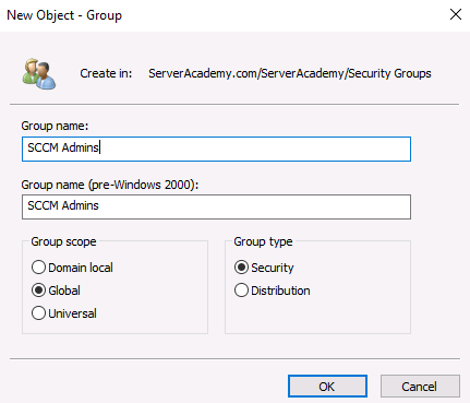 Next do the same for the “SCCM Admins” security group. In my case I am going to use the same two accounts since I am in my lab env…