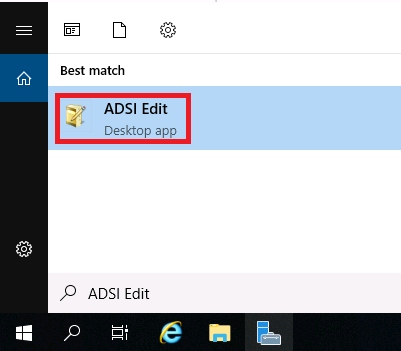 Log in to your Domain Controller and click the Windows button then search for and launch ADSI Edit.