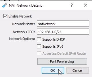 Here we can do things like changing the NatNetwork Name, we can change the Network CIDR or the subnet that will work on. I am going to change the CIDR to 192.168.1.0/24 to use the entire subnet as the network and the last octet to act as the host space.