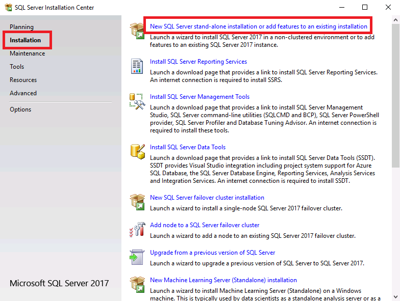 Install SQL Server 2017