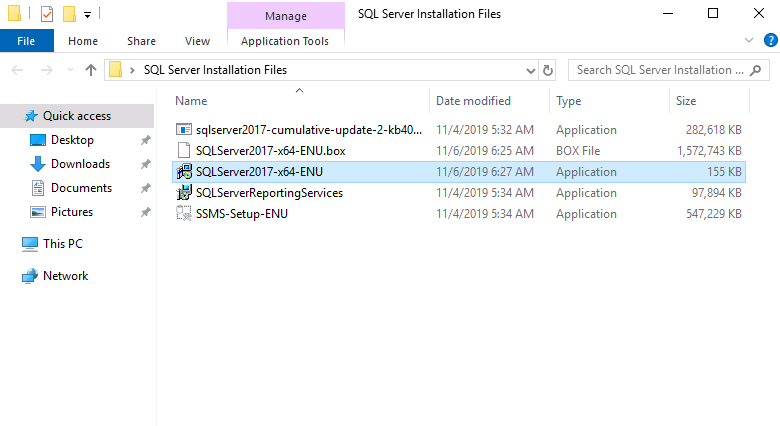 You should have already downloaded the SQL Server 2017 executable, so at this point launch the installation file.