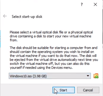 Now, you may see a Select start-up disk window when you first launch this so make sure you select Windows10.iso and click Start.