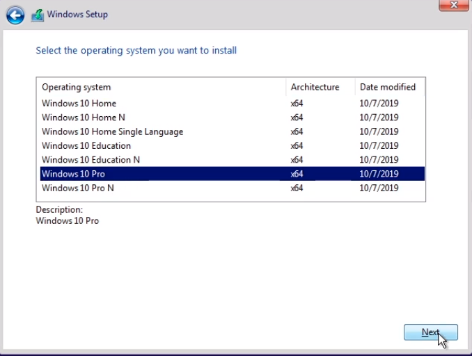 And I am going to choose Windows 10 Pro.