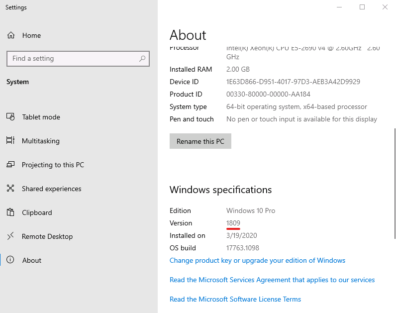 Here you will see the current edition and version you have installed on your computer.