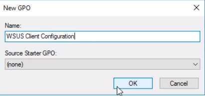 Name the GPO to something relevant to WSUS. Let’s call it WSUS Client Configuration and click OK.