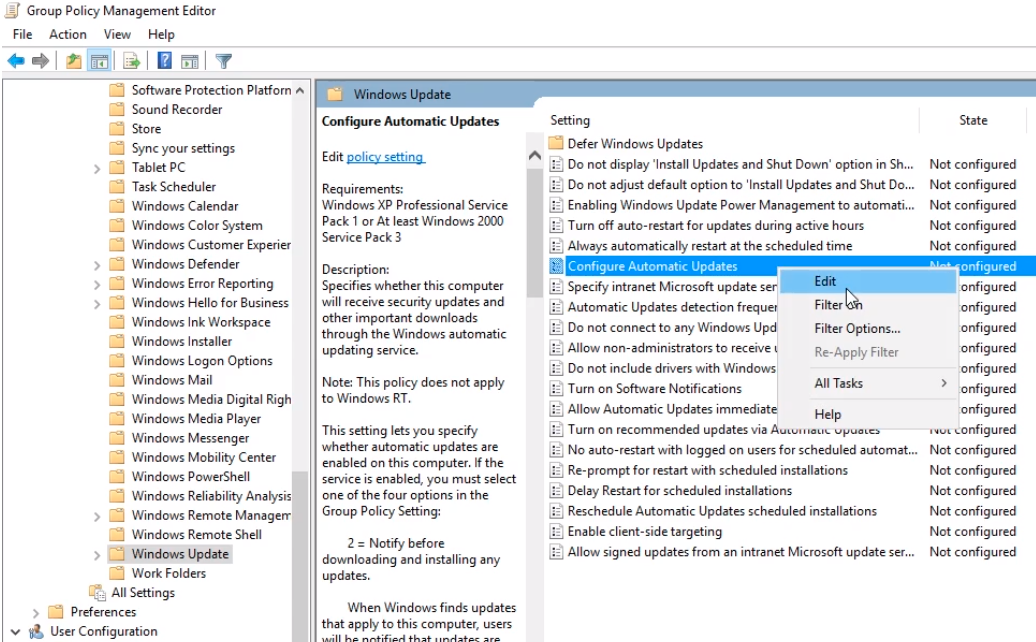 Choose Configure Automatic Updates by right-clicking on it and selecting Edit.