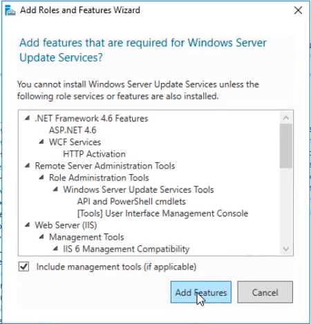 Click on the Add Features button to add all the needed features.