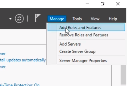 From Server Manager click Manage > Add Roles and Features. We are going to install the WSUS role.